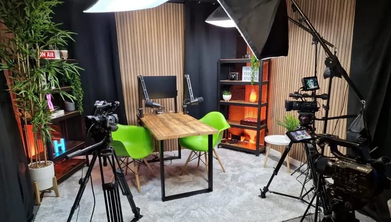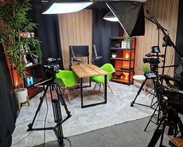 • 3 Câmeras Mirrorless Sony • 3 Tripés profissionais de câmera • 4 Microfones Tascam • 5 Fones de ouvido profissionais Tascam • 1 Mesa De Áudio Mixcast • 1 Switcher de Vídeo BMD • 1 Monitor LCD 21″ • 3 Refletores LED Amaran • 2 Tripés de Iluminação • 1 Tripé tipo Girafa • 2 Softbox para LED 60x60cm • 1 Softbox Para Flash 120cm • 1 Notebook Acer • 1 Conjunto de cabos HDMI